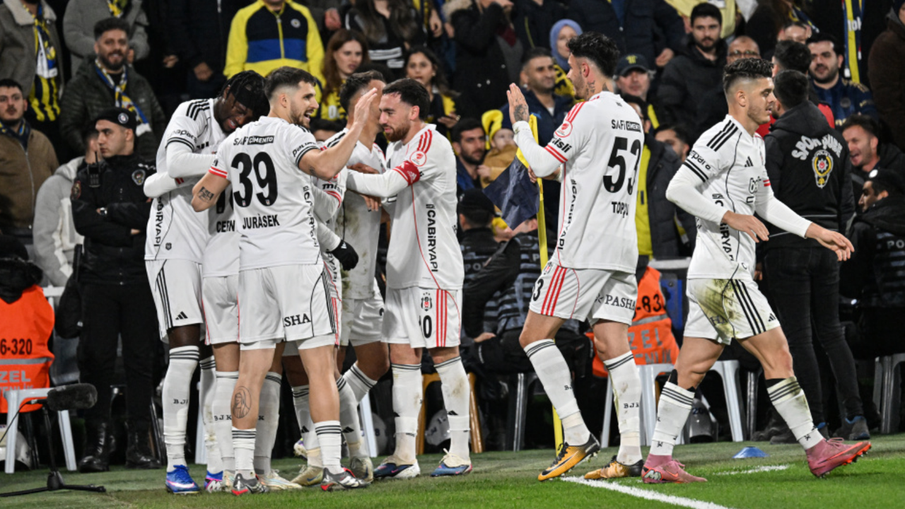 Fenerbahçe, 18’inci dakikada gole yaklaştı. Mert Müldür’ün savunma arkasına attığı pasa hareketlenen Szymanski, ceza sahasına girerek topu soluna çekti. Szymanski’nin çaprazdan şutunda top yandan auta çıktı. Beşiktaş, 33’üncü dakikada öne geçti. Ceza sahası çizgisinin üzerindeki Abraham pasını sağ çaprazdaki Cerny’e aktardı. Bu oyuncunun dar açıdan vuruşunda top kaleci Tarık Çetin’in bacaklarının arasından ağlara gitti: 0-1. Fenerbahçe, 42’nci dakikada penaltı kazandı. Sağ taraftan ceza sahasına gönderilen topta Abraham ceza sahasındaki Mert Müldür’ü formasından çekerek düşürdü. Oyunu önce devam ettiren hakem Oğuzhan Çakır, VAR uyarısının ardından pozisyonu tekrar izleyerek penaltı noktasını gösterdi. 44’üncü dakikada penaltı vuruşunu kullanan Asensio, topu sağ taraftan ağlara gönderdi: 1-1. İlk yarı 1-1 eşitlikle sona erdi.