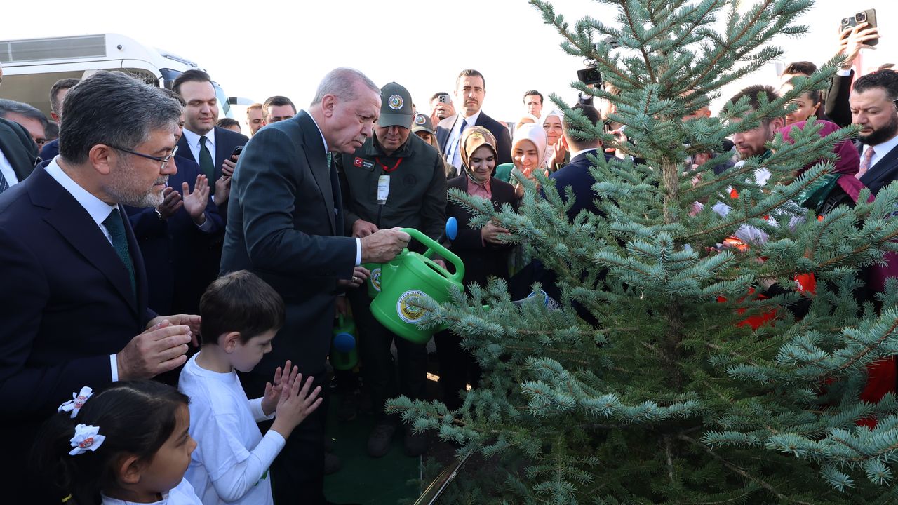 Cumhurbaşkanı Recep Tayyip Erdoğan, Ankara'nın Etimesgut ilçesinde oluşturulan 11 Kasım Milli Ağaçlandırma Günü Hatıra Ormanı'nda düzenlenen Milli Ağaçlandırma Günü Programı'nda konuştu. Erdoğan, günün ülke, millet ve çevre için hayırlara vesile olmasını dileyerek, toprağı fidanlarla buluşturmak amacıyla ağaç dikme alanlarına akın eden tüm vatandaşlara teşekkürlerini iletti. Cumhurbaşkanı Erdoğan, "Her zaman söylüyorum; biz, 'yarın kıyametin kopacağını bilseniz bile elinizdeki fidanı dikin' buyuran bir inancın mensuplarıyız. Çevre kirliliği ve iklim değişikliğinin hepimizin hayatını doğrudan etkilediği bir süreçte tabiatın korunmasına daha fazla önem vermemiz gerekiyor. Biz ormanlarımızı sadece ağaç olarak değil, nefes olarak, yaşam kaynağı olarak görüyoruz. Bu nedenle 2053 net sıfır emisyon hedefimiz ve yeşil kalkınma devrimi vizyonumuz doğrultusunda gerekli adımları atıyoruz" diye konuştu.