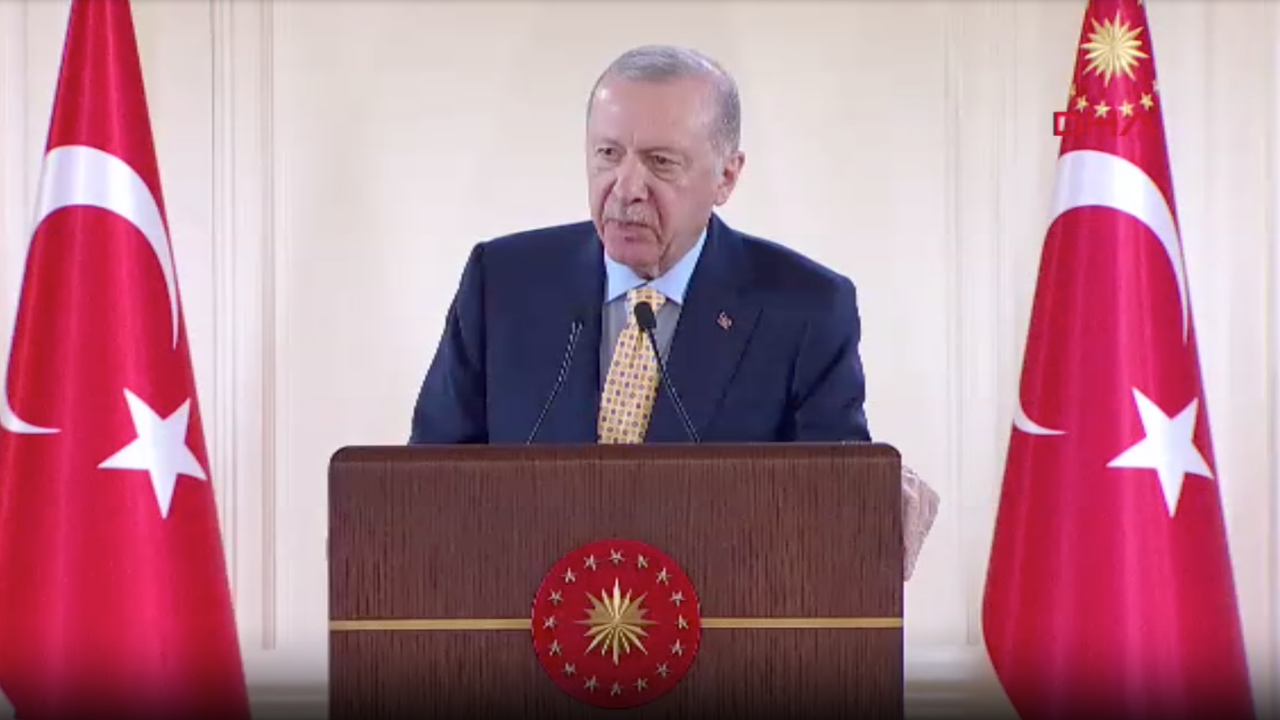 Cumhurbaşkanı Erdoğan, dünya siyasetinin yeni baştan şekillendiğini belirterek, "Yakın çevremizde çok ciddi krizler, çatışmalar ve gerilimler yaşanıyor. Yıllarca bize ahlak satan, demokrasiden dem vuran tekellerine aldıkları hak, hukuk, özgürlük kavramlarını bir sopa olarak kullanan aktörlerin çirkin yüzleri tek tek ortaya çıkıyor. Medeniyet dediklerinin tek dişi kalmış canavar olduğunu hepimiz bir kez daha görüyoruz. Devletimiz tecrübeli ve liyakatli kadroların yönetiminde bu zorlu süreçleri hamdolsun çok başarılı bir şekilde yönetmektedir. Oynanan oyunların da kurulan tuzakların da tuzak kuranlarla birlikte kuzu postu giydirilmiş sırtlan sürülerinin de gayet farkındayız. Bugün geldiğimiz noktada Türkiye, kendi güvenliği için yalnızca sınırları dahilinde değil sınırların ötesinde de her türlü adımı atmaktadır. Nerede bir tehdit ve tehlike varsa kimseden icazet almadan kaynağında etkisiz hale getiriyoruz. Kahraman ordumuzun ve diğer güvenlik birimlerimizin operasyonları sayesinde terör örgütlerinin hareket kabiliyetini ciddi ölçüde sınırlandırdık. Savunma sanayinde 23 yılda geldiğimiz seviye zaten ortada. Daha önce yüzde 80 oranında yurt dışına bağımlı olduğumuz bu alanda şimdi yüzde 80 yerlilik oranına ulaştık. Bugün İHA'lar, SİHA'lar, füzeler, roketler, gemiler, helikopterler ve tanklar dahil hemen her alanda kendi ihtiyaçlarımızı kendimiz karşılayabiliyoruz. İnşallah yarın sıra savaş uçaklarına, uçak gemilerine gelecek. Cenab-ı Allah'a sonsuz şükürler olsun. Azmettik, çalıştık, kendimize güvendik ve işte 23 yılda buralara geldik" ifadelerini kullandı.