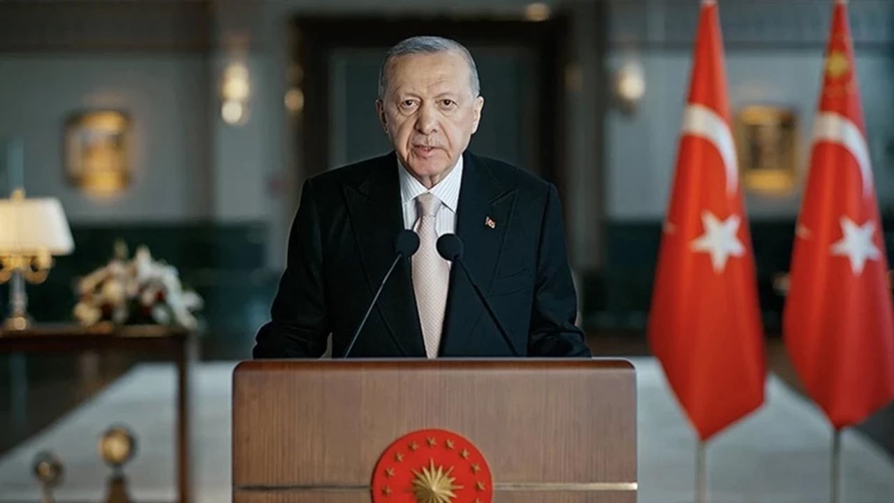 Erdoğan, Türkiye'nin hem güçlü hem de köklü bir devlet olduğunu vurgulayarak, "Cumhurbaşkanlığı forsumuzdaki güneş ve etrafındaki 16 yıldız, bizim binlerce yıllık devlet geleneğimizi temsil ediyor. 'Ebet-müddet' ülküsüyle kurduğumuz bu devletlerin her biri, milli kimliğimizin şan ve şeref payesi; cihana yön veren aziz milletimizin kudret ve merhamet nişanesidir. Türkiye Cumhuriyeti ise, tarihinin en sancılı günlerinde, onca zorluğa, yokluğa, sıkıntıya rağmen hürriyet ve istiklaline dört elle sarılan fedakar milletimizin son çatısı; devletler zincirimizin son halkasıdır. Bu yüksek şuurla şehit ve gazilerimizin emanetine sahip çıkmak; cesur ve cefakar ellerde yükselen Türkiye Cumhuriyeti’ni ilelebet payidar kılmak için var gücümüzle çalışıyoruz. Asra mührümüzü vuracağımız Türkiye Yüzyılı hedeflerimiz doğrultusunda; savunma sanayiinden ekonomiye, eğitimden tarıma, turizme, enerjiye ve dış politikaya kadar her alanda ezber bozan atılımlar içindeyiz. 6 Şubat 2023 tarihinde yaşadığımız deprem felaketinin yaralarını sarıyor, afetzede kardeşlerimizi hızla güvenli yuvalarına kavuşturuyoruz. İnşallah yıl sonuna kadar, söz verdiğimiz şekilde, 453 bin konutun anahtar teslimini gerçekleştirmiş olacağız" ifadelerine yer verdi.
