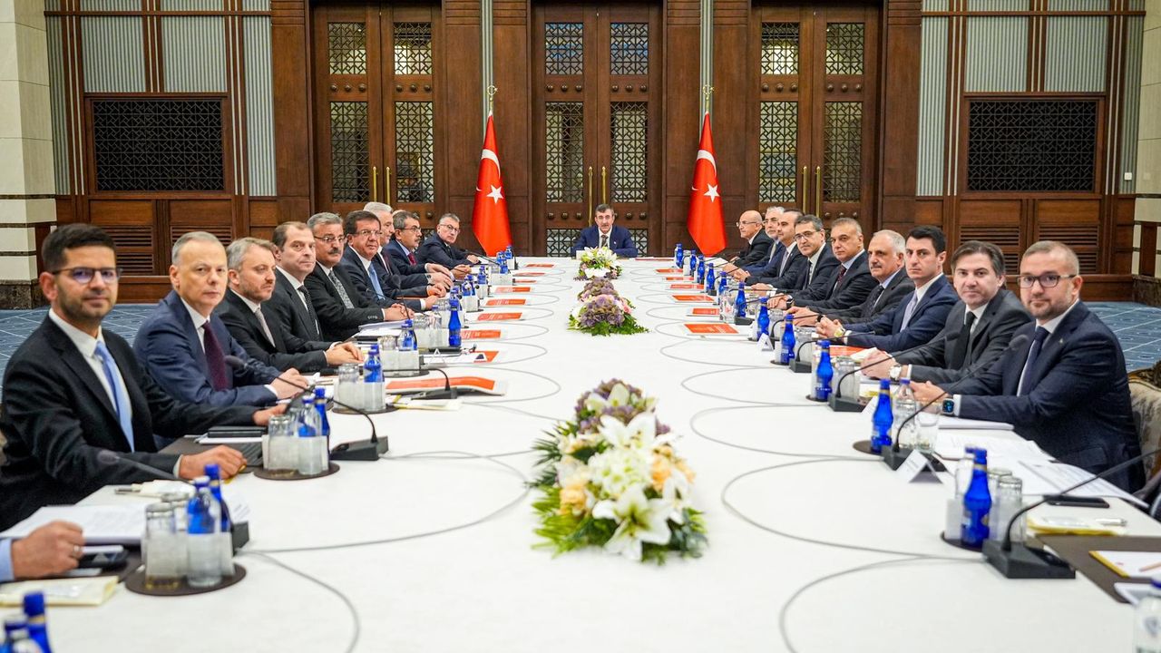 EKK, Cumhurbaşkanı Yardımcısı Cevdet Yılmaz başkanlığında Cumhurbaşkanlığı Külliyesi'nde toplandı. Toplantıya Hazine ve Maliye Bakanı Mehmet Şimşek, Çalışma ve Sosyal Güvenlik Bakanı Vedat Işıkhan, Sanayi ve Teknoloji Bakanı Mehmet Fatih Kacır, Ticaret Bakanı Ömer Bolat, Milli Eğitim Bakanı Yusuf Tekin, AK Parti Grup Başkanı Abdullah Güler, AK Parti Genel Başkan Yardımcısı Nihat Zeybekci, Strateji ve Bütçe Başkanı İbrahim Şenel ve Türkiye Cumhuriyet Merkez Bankası (TCMB) Başkanı Fatih Karahan katıldı. Basına kapalı gerçekleştirilen toplantının ardından yazılı açıklama yapılması bekleniyor.
