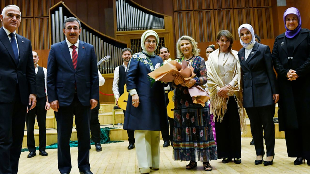 İspanya'nın Ankara Büyükelçisi Cristina Latorre Sancho, programdaki konuşmasının başında, adil davalara olan bağlılığı, sosyal çalışmalardaki üstün gayreti ve toplumun en dezavantajlı, en kırılgan ve en çok acı çeken kesimlerinin yaşam koşullarını iyileştirmeye yönelik üstün çabalarından dolayı Emine Erdoğan'a teşekkür ve takdirlerini iletti. Sancho, 'Filistin İçin Flamenko Girişimi' adını verdikleri etkinliğe katkı sunan herkese teşekkür ederek, "Kültür ve sanat, barbarlığa, ölüme, soykırıma ve yıkıma karşı insanlığın en asil cevabıdır. Hepinize bu akşam bizlerle birlikte olduğunuz için gönülden teşekkür ediyor, programımızı beğeneceğinizi ümit ediyorum. Dünyanın en harika ülkelerinden biri olan Türkiye'de, İspanya'nın Büyükelçisi olarak görev yapmak benim için bir onurdur" dedi.