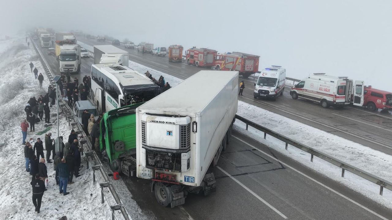 Kaza, sabah saatlerinde, Erzurum-Erzincan kara yolu Kandilli yol ayrımı yakınlarında meydana geldi. Yoğun sis ve kar yağışı sebebiyle kayganlaşan yolda Erzurum istikametine giden 73 DV 258 plakalı TIR, kaydı. Sürücüsünün direksiyon hakimiyetini kaybettiği TIR'ın kupası ters döndü. Bu sırada aynı istikamette ilerleyen 34 DGD 651 plakalı yolcu otobüsü duramayıp, ters dönen TIR'ın kupası çarptı. Kazaya toplam 11 araç karıştı. İhbar üzerine bölgeye jandarma, AFAD, itfaiye, sağlık ekipleri sevk edildi. Sağlık görevlileri araçlardan çıkarılan yaralılara ilk müdahalelerini yapıp, ambulanslarla Erzurum'daki hastanelere sevk etti.