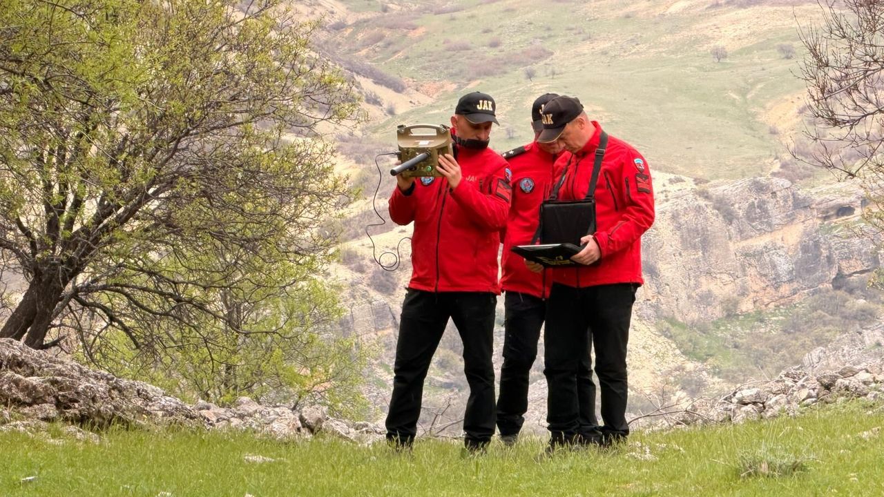 Günün erken saatlerinde araziye çıkan ekiplerin bir bölümü, yer altı görüntüleme cihazlarıyla tarama gerçekleştiriyor. Cihazların gönderdiği kızılötesi sinyaller sayesinde yer altının üç boyutlu görüntüsü elde edilerek şüpheli alanlar detaylı şekilde inceleniyor. Diğer ekipler ise bölgedeki mağaralara halatlarla girip, el feneri ve tepe lambalarıyla iç kısımlarda arama yapıyor. Zorlu arazi şartlarına rağmen çalışmaların titizlikle sürdürüldüğü arama faaliyetlerinde, ‘insan kalıntılarını tespit edebilen’ olarak da bilinen kadavra köpekleri de görev yapıyor. Labrador ırkından seçilen bu köpeğin, gelişmiş koku alma yetenekleri ve özel eğitimleri sayesinde yıllar önce kalmış insan kalıntılarını dahi tespit edebileceği belirtilirken, arama çalışmalarının elde edilecek bulgular doğrultusunda farklı noktalarda da sürdürülebileceği, çalışmaların 1 ay sürebileceği öğrenildi.