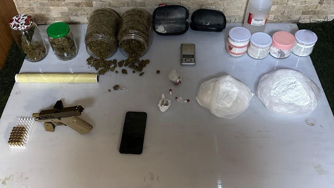 Evde yapılan aramalarda 2 kilo 183 gram kokain, 1 kilo 324 gram marihuana, bir miktar kubar, 20 adet uyuşturucu hap, 1 litre amonyak, 1 adet hassas terazi, 1 adet ruhsatsız tabanca ve 1 adet cep telefonu ele geçirildi. Ele geçirilen uyuşturucunun piyasa değerinin yaklaşık 10 milyon lira olduğu öğrenildi.