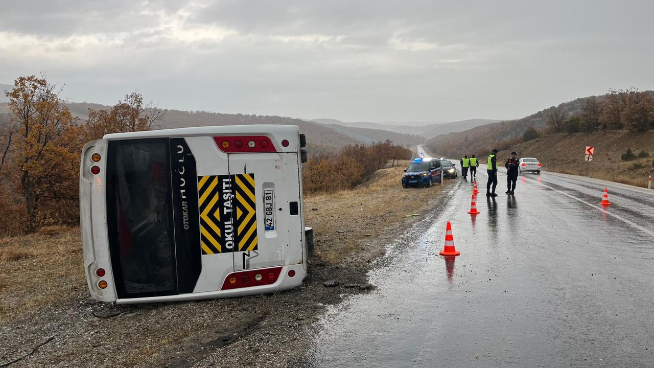 Kaza, saat 07.30 sıralarında Beyşehir-Antalya kara yolunda meydana geldi. Huğlu Mahallesi'nden ilçe merkezine lise öğrencilerini taşıyan Durmuş K. idaresindeki 42 GBJ 81 plakalı okul servisi, yağmur nedeniyle kayganlaşan yolda, sürücüsünün kontrolünden çıkarak devrildi. Kazayı görenlerin ihbarıyla olay yerine sağlık ve jandarma ekipleri sevk edildi. Kazada yaralanan 28 öğrenci ile servis şoförü ambulanslarla Beyşehir Devlet Hastanesi'ne kaldırıldı. Yaralıların durumlarının iyi olduğu öğrenilirken, kaza ile ilgili soruşturma başlatıldı.