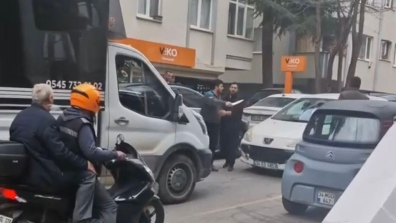 Diğer yandan kavga anları cep telefonu kamerasına yansıdı. Görüntülerde kavga anlarını kayda alan kadının "Bıçak mı çekti o" cümleleri duyuluyor. Görüntülerde yolda karşı karşıya gelen ve kamyonetten inen şoförün elindeki bıçakla otomobil sürücüsüne dakikalarca "Özür dileyeceksin" diye bağırdığı anlar da görülüyor. Kavganın ardından kamyonet sürücüsü ve yanındaki kişi araca geri dönüyor.