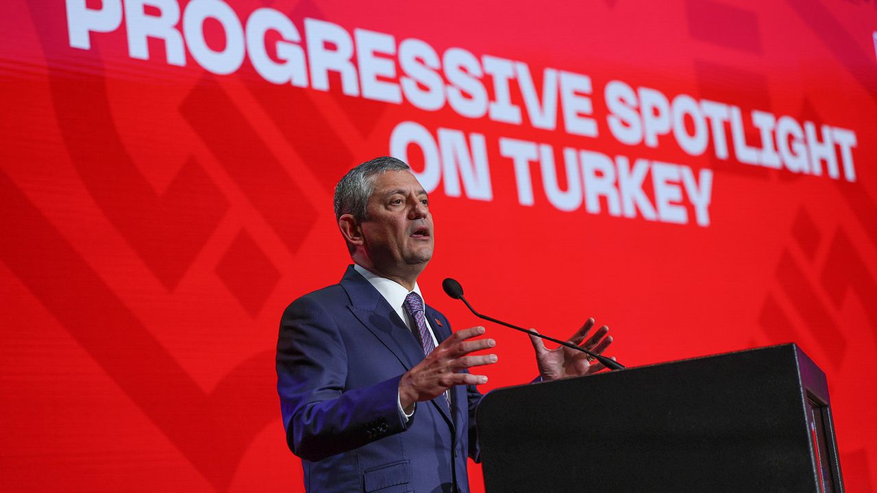 Avrupa ve dünya genelinin aksine, Türkiye’de aşırı sağın değil, sosyal demokrasi ve solun yükseldiğini dile getiren Özel, “48 yıl sonra, partimiz ilk kez 1,5 yıl önce birinci parti oldu. Erdoğan partisini kurduğu günden beri ilk kez ikinci parti oldu. Yerel seçimlerde belediyelerin yüzde 65’ini kazandık. 1,5 yıldır bütün anketlerde oyumuz yüzde 38’di yerel seçimlerde, Erdoğan’ın üç puan önündeydik. Şu anda yüzde 41’le yedi puan önündeyiz. Bir Türkiye modeli ile gençleri, işçileri, mağdur olan herkesi örgütleyen, sokağa davet eden; hafta içi çarşamba akşamı İstanbul’da, İstanbul tarihinin en kalabalık, 100 binlik mitinglerini yapan; milyonlarla hafta sonu mitingleri yapan bir sürecin içindeyiz. İnanın ki teslim olmuyoruz. Sandığa ve geleceğine sahip çıkanlar son yerel seçimlerde yüzde 86’lık bir katılımla sandık başına gitti. Yani Türkiye sahip olduğu, sevdiği her şeyini bu günlerini borçlu olduğu sandığı bırakmıyor. Aslında sandığa sarılıyor. Bize sarılıyor. Ama Erdoğan buna karşı devletin tüm kurumlarını ve maalesef yargıyı ele geçirdi ve büyük haksızlıklarla onu bir siyasi araç olarak kullanıyor. Türkiye’de partilerin ana kademesi var, kadın kolları var, gençlik kolları var. Erdoğan’ın partisinin bir de yargı kolları var. Eskiden partisinde siyaset yapanları hakim yaptı, eskiden partisinde bakan yardımcısı olan birini İstanbul’a başsavcı yaptı. Haysiyetimize, onurumuza, her şeyimize saldırıyor. Ekrem İmamoğlu’nun 31 yıllık diplomasını iptal etti, sadece Cumhurbaşkanı adayı olmasın diye” ifadelerini kullandı.