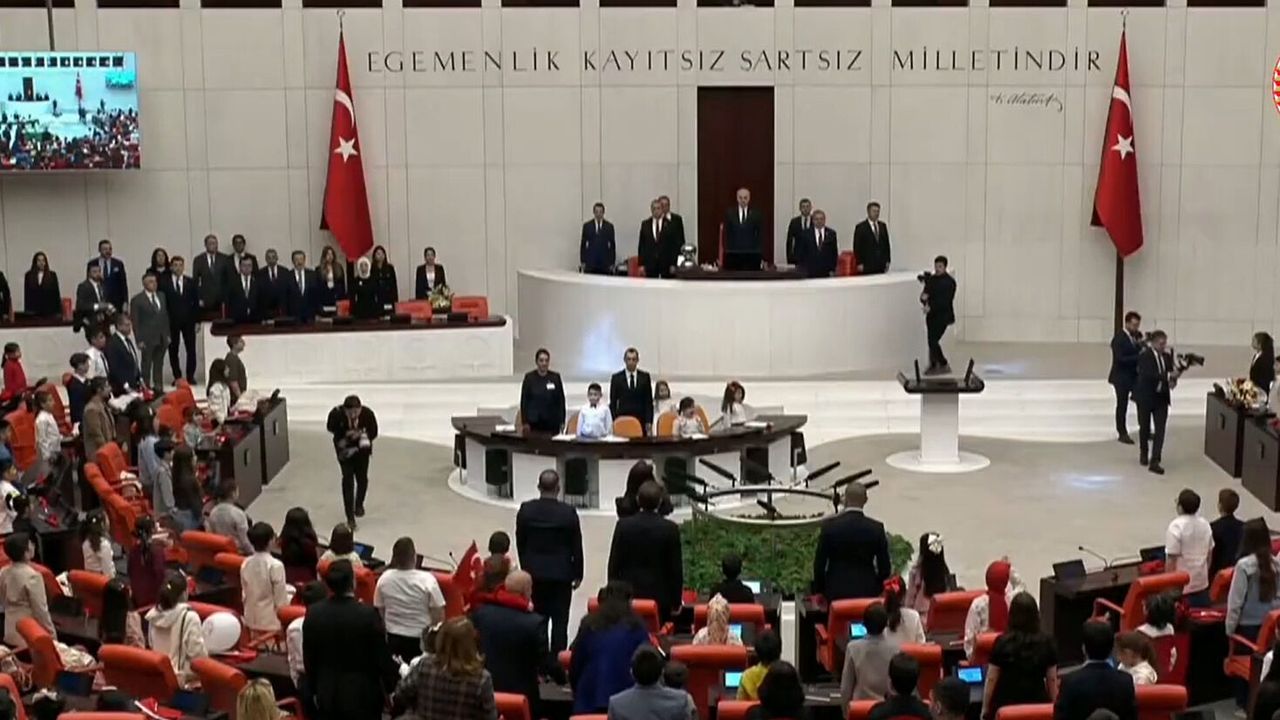 TBMM Genel Kurulu, çocuk özel gündemiyle Meclis Başkanı Numan Kurtulmuş başkanlığında toplandı. Oturuma, Milli Eğitim Bakanı Yusuf Tekin, Yeni Yol Partisi Grup Başkanvekili Mehmet Emin Ekmen, milletvekilleri ve çok sayıda çocuk katıldı. TBMM Başkanı Numan Kurtulmuş, oturumu açtı ve Genel Kurul'da İstiklal Marşı okundu. Ardından konuşan Kurtulmuş, "TBMM, dünyadaki diğer meclislerden farklı olarak devlet kurulduktan sonra oluşturulmuş bir yapı değildir. Milletvekilleri, Ulus'ta bulunan 1'inci Meclis'te henüz Milli Kurtuluş Mücadelemiz verilirken bir araya gelmiştir. Bunlardan bir kısmı İstanbul'daki İngiliz işgali dolayısıyla dağıtılmış olan Meclis-i Mebusan'ın üyelerinden bir kısmı ise Anadolu'nun dört bir tarafından seçilmiştir. Bu milletvekilleri vasıtasıyla milletimiz henüz devleti kurmadan önce Meclis'i kurmuştur. Böylelikle 1'inci Meclis sadece yasaların çıkarılması ya da sadece birtakım denetim faaliyetlerinin ötesinde, Türkiye'nin verdiği 'Ulusal Kurtuluş Mücadelesi'nin bir karargahı, ordu merkezi, emir-komuta merkezi olarak çalışmıştır. O zor günlerde Milli Kurtuluş Mücadelemizi veren ve 1'inci Meclis'imizin de Başkanı olan Gazi Mustafa Kemal Atatürk ve arkadaşları olmak üzere o Meclis'in bütün kahramanlarını saygıyla ve minnetle hatırlıyoruz" ifadelerini kullandı.