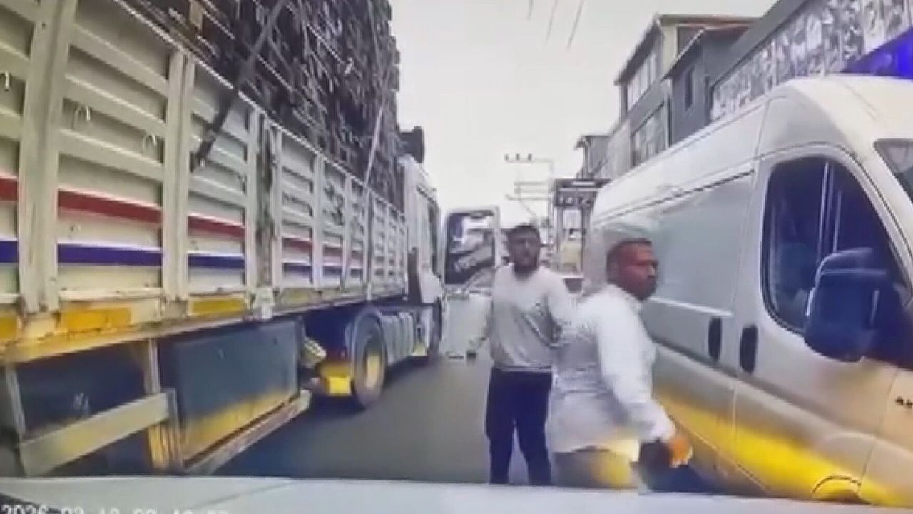 Olay, akşam saatlerinde Seyhan ilçesi Mehmet Akif Ersoy Caddesi’nde meydana geldi. TIR sürücüsü ile otomobil sürücüsü arasında trafikte yol verme nedeniyle tartışma çıktı. Tartışmanın büyümesi üzerine araçtan inen TIR şoförü ile yanındaki kişi, ellerinde bıçakla otomobile doğru koştu. Şüpheliler, otomobilin üzerine çıkarak araca zarar verdi. O anlar, otomobilin yol kamerası tarafından kaydedildi.